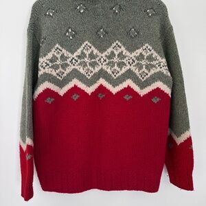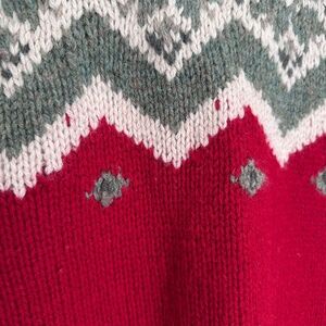 Cozy, classic, and full of holiday charm! This vintage wool sweater features a timeless red and green color palette that’s perfect for Christmas gatherings, winter photos, or cozy nights by the fire. 100% Wool!