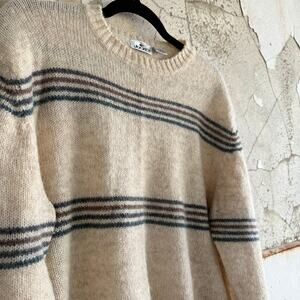 Vintage Wool Sweater Striped Pullover 100% Wool Mens L Preppy Coastal Grandpa