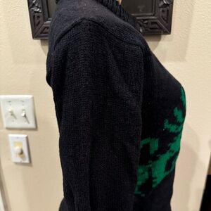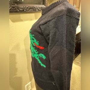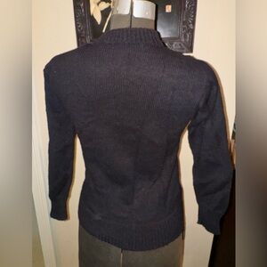 This wool dragon sweater has no labels. It looks to me like a Women’s Size Small or a Child’s XL. It fit easily on my Women’s mannequin for pictures. It’s in excellent condition. There are no tears, stains, pulls, pilling or moth holes. Appears to have never been worn.