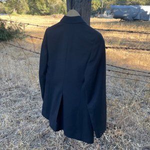Vintage Wool Riding Coat | Show Jacket exquisitely tailored and imported from Yugoslavia. 100% wool 4 button design with traditional back vent, exterior front flap pockets and 1 button sleeve. For stowing away a few small items, there's an Interior slash pocket with 2 extra buttons stitched in - 1 larger for the front and 1 small for the sleeve. Black satin lining. Dry clean only. Tag says 8-R, it seems to fit more like a 6 except for the longer length.