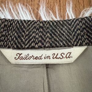 Vintage Wool Tweed Herringbone Blazer Mens 44R Brown Black Jacket USA Sport Coat