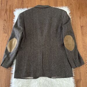 Vintage Wool Tweed Herringbone Blazer Mens 44R Brown Black Jacket USA Retro. See pics for measurements. Its brown and black with a few other colors mixed in. Made in USA. Has elbow patches. Excellent condition. See pics for all measurements. Two button closure in the front. From a smoke free/pet free home