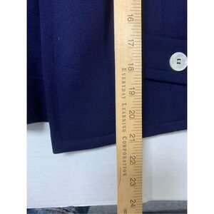 Ladies super cute navy blue button down blazer style cardigan sweater. 100% wool. Excellent vintage condition. Ladies size small.
