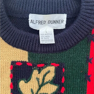 Vintage Wool-Blend Fall Leaves Knit Sweater Large