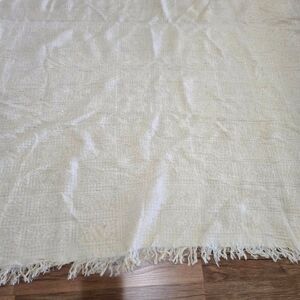 Measures approximately 90 inches x 110 inches. Textured pattern, quite heavy, with no visible holes or stains.