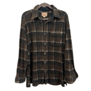 Vintage Woolrich Brown Plaid Flannel Button Up Shirt Top Mens Size Large