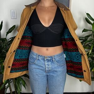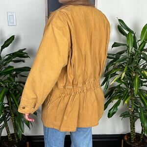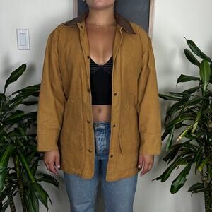 Perfect condition, vintage made in the USA coat with removable wool lining. From the leather collar to the big pockets this oversized jacket is perfect! Wear lightweight without the lining or perfect for winter days with the wool lining buttoned in.