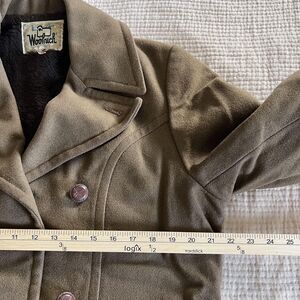 Woolrich tag present inside with classic sheep logo and "EST. 1830" embroidery. Size tag reads 36.