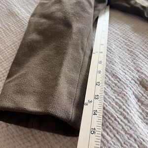 Outer shell is a durable brown wool, interior is fully lined with thick brown sherpa/faux shearling for excellent warmth. Two large front pockets and button front closure. Back vent for ease of movement.