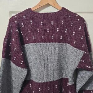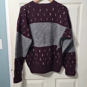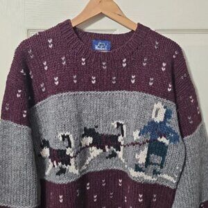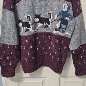 Vintage Woolrich Dog Sledding Wool Sweater Burgundy Grey Men's L Good PreOwned