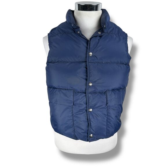 Vintage Woolrich Down Puffer Vest Womens Medium Blue Snap Button Pockets Casual