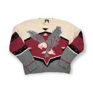 Vintage Woolrich Eagle Bird Wool Knit Sweater Tribal Pullover Mens XL