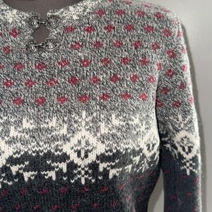 Gorgeous Lambs Wool Nylon Blend Sweater with Nordic Style Clasps at the Neckline