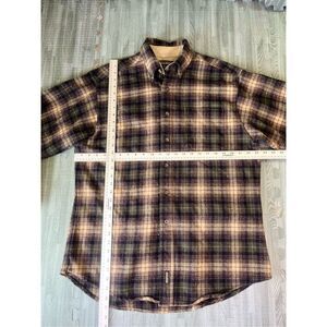 Vintage Woolrich Flannel Button Up Shirt Men's Plaid Brown Long Sleeve Size L