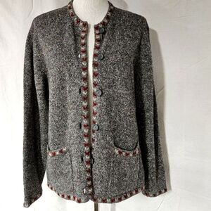 Vintage Woolrich Heather Gray Decorative Trim Wool Blend Button Front Sweater