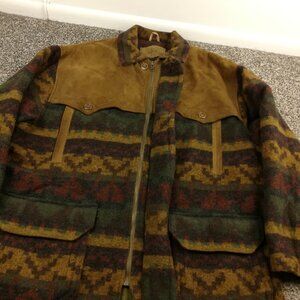 Vintage Woolrich Jacket Wool Aztec Southwestern Tribal Leather Trim Mens XL