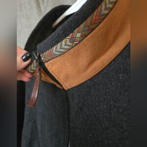Crafted for the outdoor enthusiast, the Vintage Woolrich John Rich & Bros Blue Label Wool Jacket combines timeless style with rugged functionality. A full zip closure, complemented by a softshell fabric construction, ensures warmth and comfort during the brisk fall and winter seasons. Its solid dark gray color, accentuated with the iconic Woolrich logo, gives this fleece jacket a classic western vibe that's perfect for hiking or casual outings.