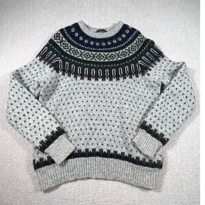 Vintage Woolrich Men’s L Gray Blue Striped Nordic Fair Isle High Neck Pullover