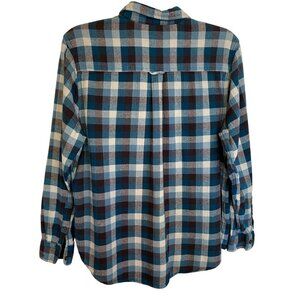 This Woolrich plaid shirt combines classic design with superior craftsmanship. The 100% cotton material ensures comfort and breathability, making it a versatile outdoor wardrobe staple. With a traditional button-down front, chest pockets, and a timeless blue and brown plaid pattern, this shirt is ideal for casual outings or layering in cooler weather.