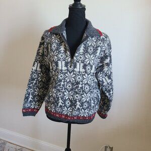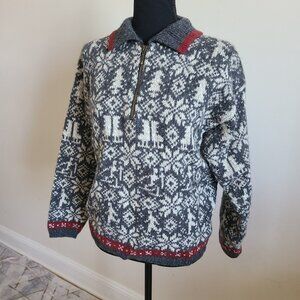 Vintage Woolrich Nordic Knit Sweater Womens S/ M Made in USA Fair Isle Half Zip