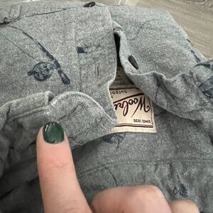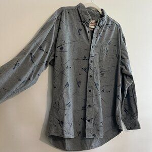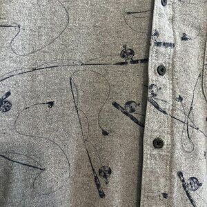 Vintage Woolrich Novelty Print Fishing Rod Soft Button Front Long Sleeve Shirt