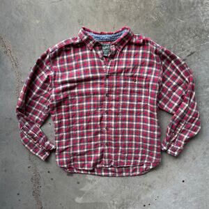 Vintage Woolrich Plaid Flannel Shirt Men's 2XL Red Button Front Long Sleeve
