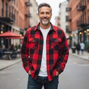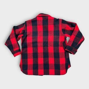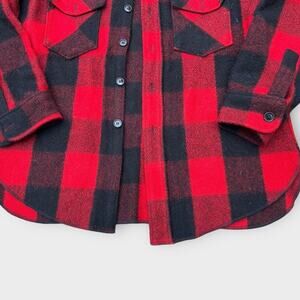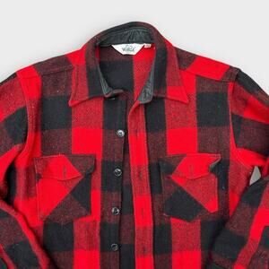 Vintage Woolrich men's size Large Red and black buffalo plaid heavyweight button up wool shirt jacket. I believe this is from the late 70s. It's in excellent condition with no holes or stains that I can find. there is a little something on one cuff, but should come off easily with a cleaning.