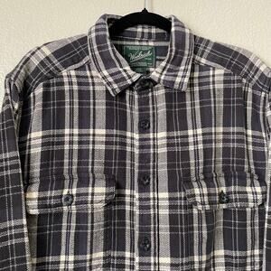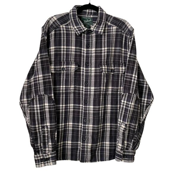 Vintage Black White Plaid Flannel Button Up Shirt Woolrich Large