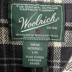 Vintage Woolrich Shirt Mens Large Black Plaid Flannel Elbow Patches Heavyweight
