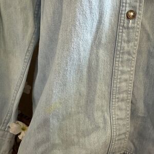 In good gently used condition. There is a little bit of fraying around some of the button holes and a few discoloration marks at shown. Slight rolling at hem. Nothing super noticeable unless looking hard for it. Super cool piece! Size XL