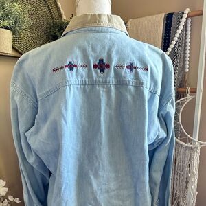 Vintage Woolrich Southwestern Double Sided Tribal Embroidered Bleach Denim Top