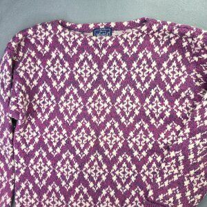 Vintage Woolrich Sweater Womens L Pink Blue Wool Fair Isle Diamond Boatneck 90s