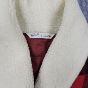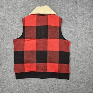 Woolrich Vest Womens Large Red Black Buffalo Plaid Sherpa Collar Wool Western