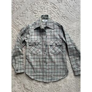 Vintage Woolrich Women’s 100% Wool Shirt Jacket Gray Red Plaid Size S