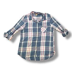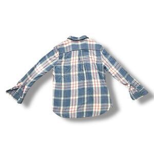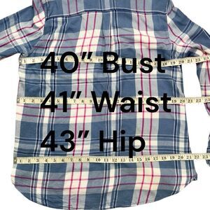 Vintage Woolrich Women's Blue and Pink Plaid Button Down Shirt Sz L