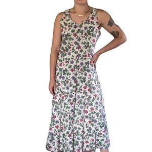 Vintage Woolrich Womens Linen Blend Floral Lagenlook Maxi Hippie Dress Sz M