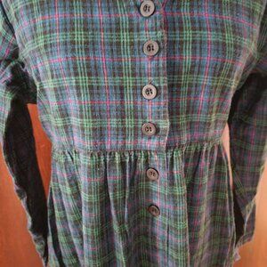 Vintage Woolrich Womens Plaid Maxi Dress With Button Front & Long Sleeves