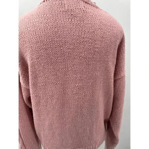 Embrace cozy and timeless style with this Vintage Woolrich Women's Pink Abstract Hand Knit Sweater in Size Medium. Crafted with care, this beautifully textured sweater features a unique abstract design in soft pink hues, perfect for adding warmth and style to your winter wardrobe. Please note the small brown mark on the front and a few loose threads. For additional details on wear, please refer to the provided images. A perfect blend of vintage charm and craftsmanship for any fashion-forward collection!