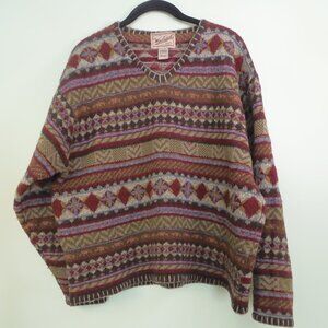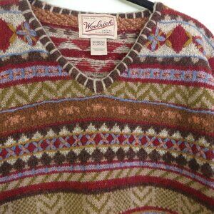 Vintage Woolrich Women's XL Wool Fair Isle Nordic Style V Neck Sweater