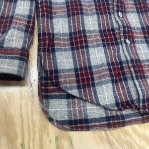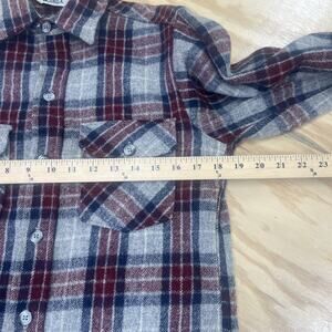 Vintage Woolrich Wool Burgundy Plaid Flannel Shirt Men’s Small Utility USA Made