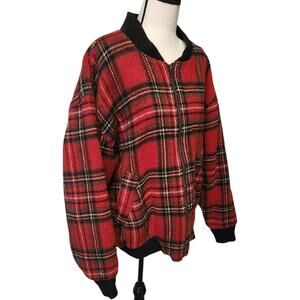 Vintage Woolrich Wool Mohair Red Tartan Plaid Bomber Jacket Coat USA Women XL