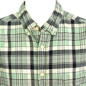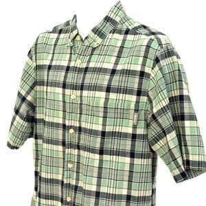 Vintage Woolrich Plaid Button Down Short Sleeve Men's Size Medium 100% Cotton Green Black Lightweight Spring Summer Beach Casual