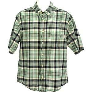 Vintage Woolrich Plaid Button Down Short Sleeve Men's Size Medium 100% Cotton Gr