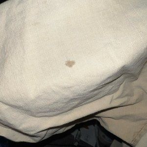 Size L (I believe). It actually seems bigger and would fit XL. It’s in good condition. There is a little stain on the back of the arm. For the age of the shirt it’s been very well taken care of. The fabric is a bit thicker. There are no holes or wear.