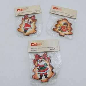 Vintage Woolworth Wooden Double-Sided Ornaments Embossed Musical 3 Inch