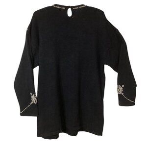 Vintage Work In Progress By Gladys Bagley Beaded Black Knit - Sweater Size 2X