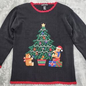 Vintage Work in Progress Embroidered Beaded Christmas Tree Sweater Size M Black