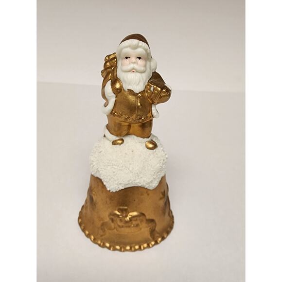 Vintage World Bazaars Inc. Holiday Collection Gold Suited Porcelain Santa Bell