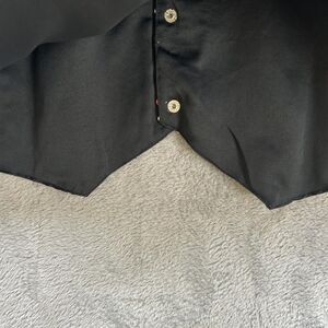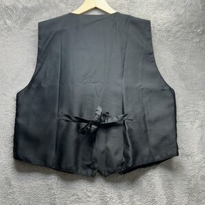 Construction: Dense all-over sequins on the front with a smooth black fabric backing and lining. The vest closes with snap fasteners at the front and has an adjustable tie at the back waist for a more tailored fit.
