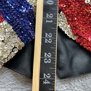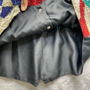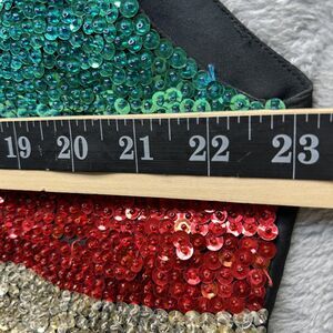 Color: Multicolor front (green, red, silver, blue sequins) with solid black back and lining.